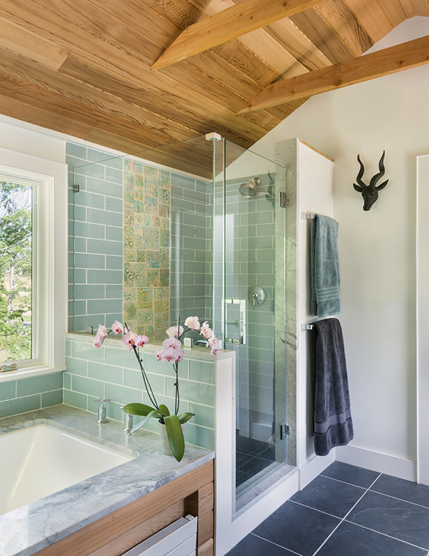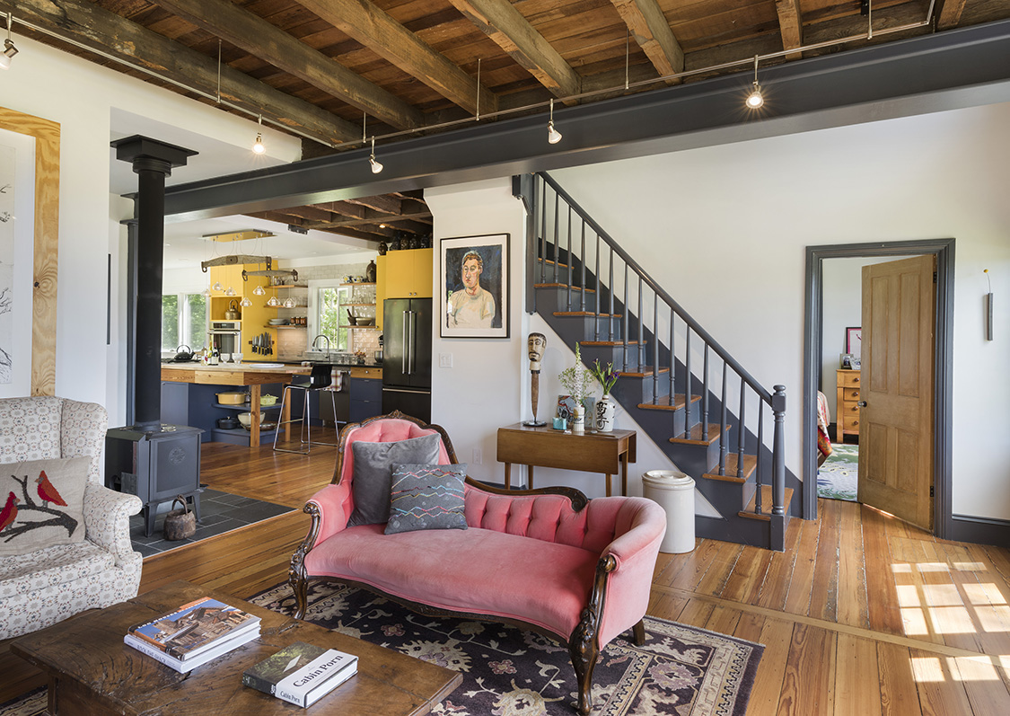 The artistic eye and unique taste of our clients pushed us to a new level of custom work, where the inclusion of the clients’ own work as well as their selection of a few antique pieces helps bring an aesthetic of revival to the home. A primary example of this is the cattle yoke, an item that the clients presented and requested be incorporated within the design of the kitchen. Our team took this and ran with it, turning a piece of classic farm equipment into a featured lighting fixture.