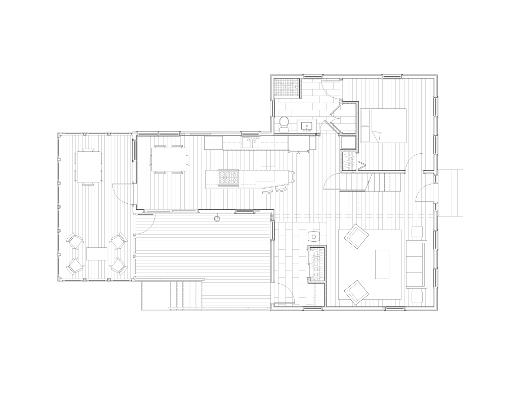 This total home renovation began with a colonial-revival style house that had previously undergone two additions. In recognizing the intrinsic value of the initial structure, Sixteen On Center sought to create a stark contrast between what was original and what was later added, an expression that was created through the use of knotty cedar on the exterior.